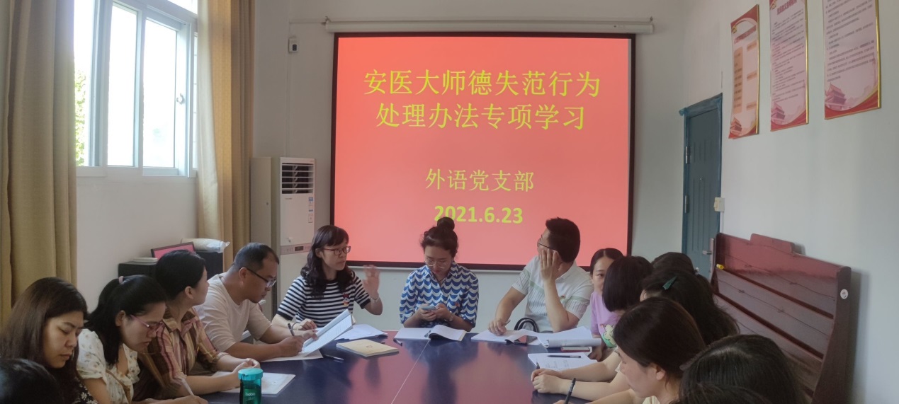 外语党支部组织学习《yl23411永利官网登录师德失范行为处理办法》 发布时间:2021-06-23 浏览次数:1341 外语党支部按照学校和学院的要求和安排,6月23日下午组织党员认真学习了《yl23411永利官网登录师德失范行为处理办法》。通过集中学习,全体党员清楚了解了具体的师德失范行为清单和对师德失范行为的处理程序及结果运用,做到警钟长鸣,师德师风建设常抓不懈。